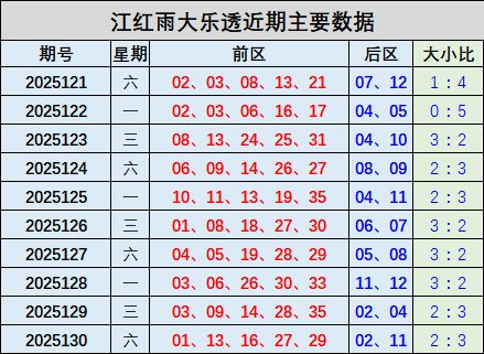上期回顾:大乐透上期开奖奖号:01 13 16 27 29,后区02 11。前区号码大小比为2:3。